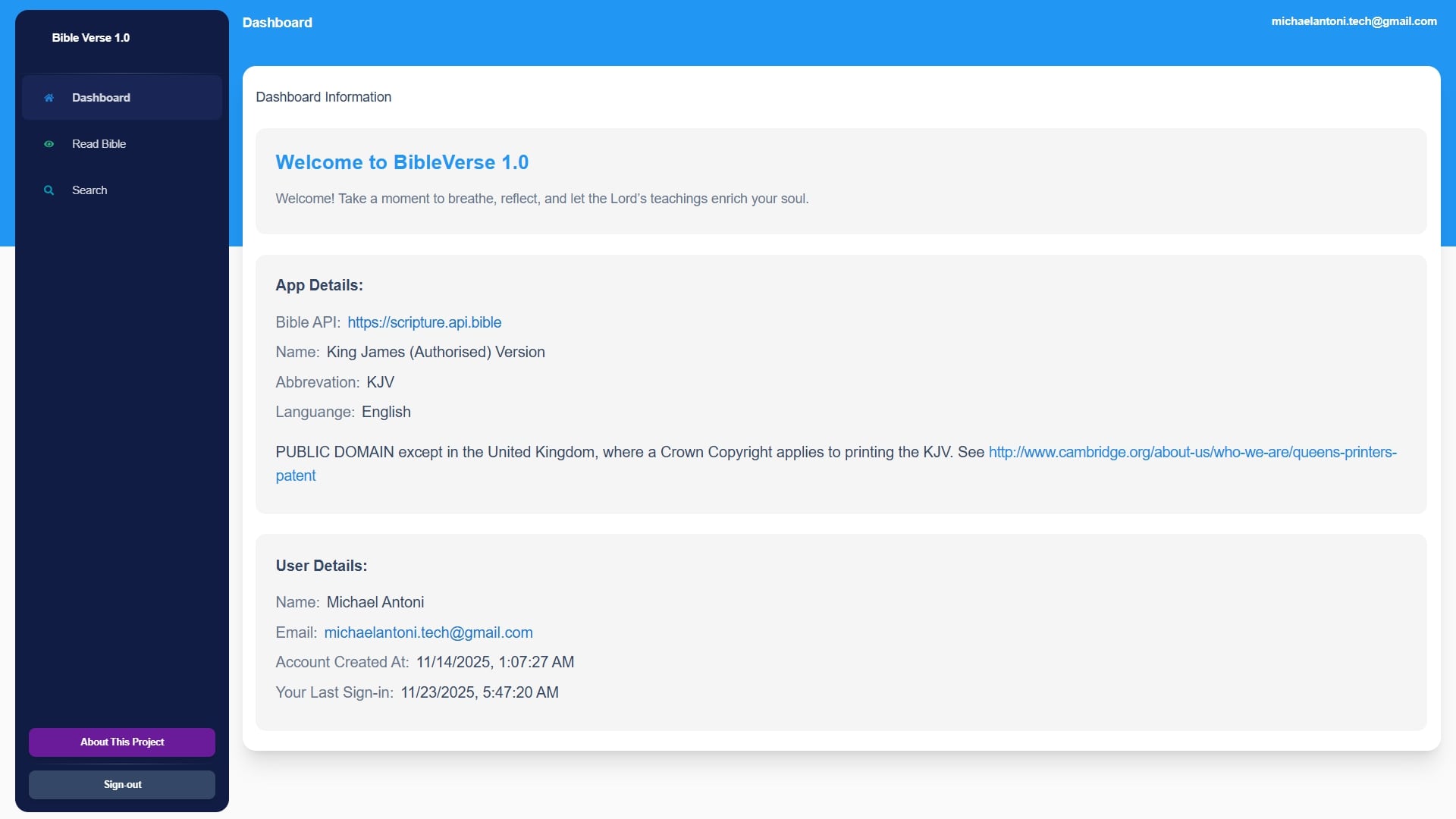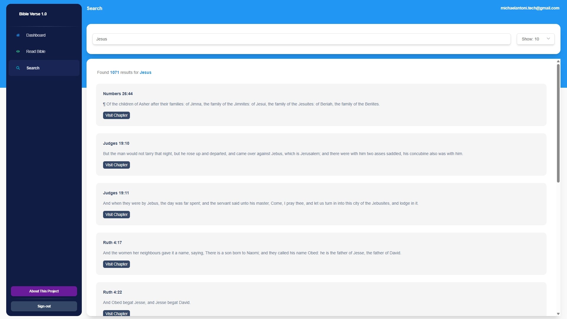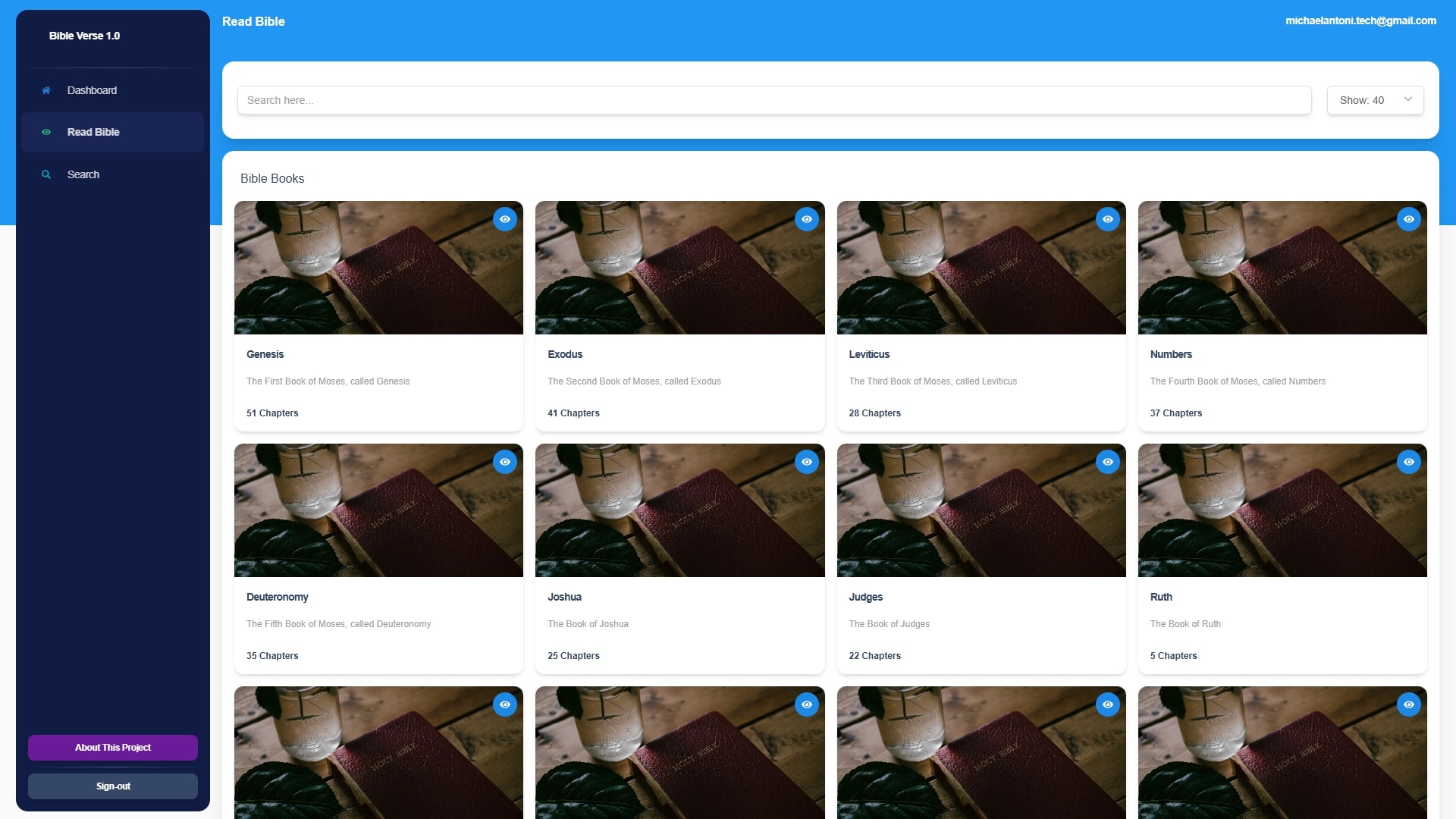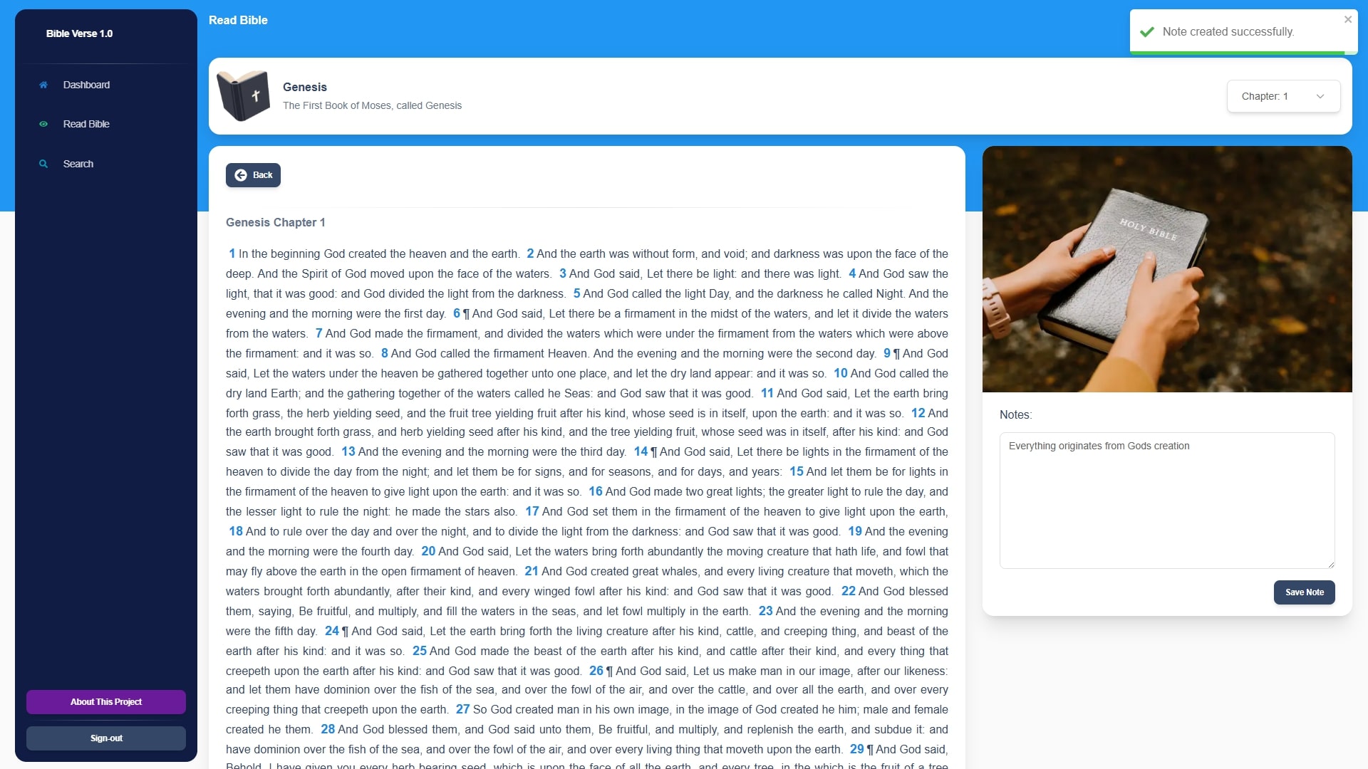 A Bible browsing and note-taking web application built with Next.js , TailwindCSS and Supabase. Users can explore books and chapters, search across all verses, and save personalized notes for each chapter of the book.Project Link
