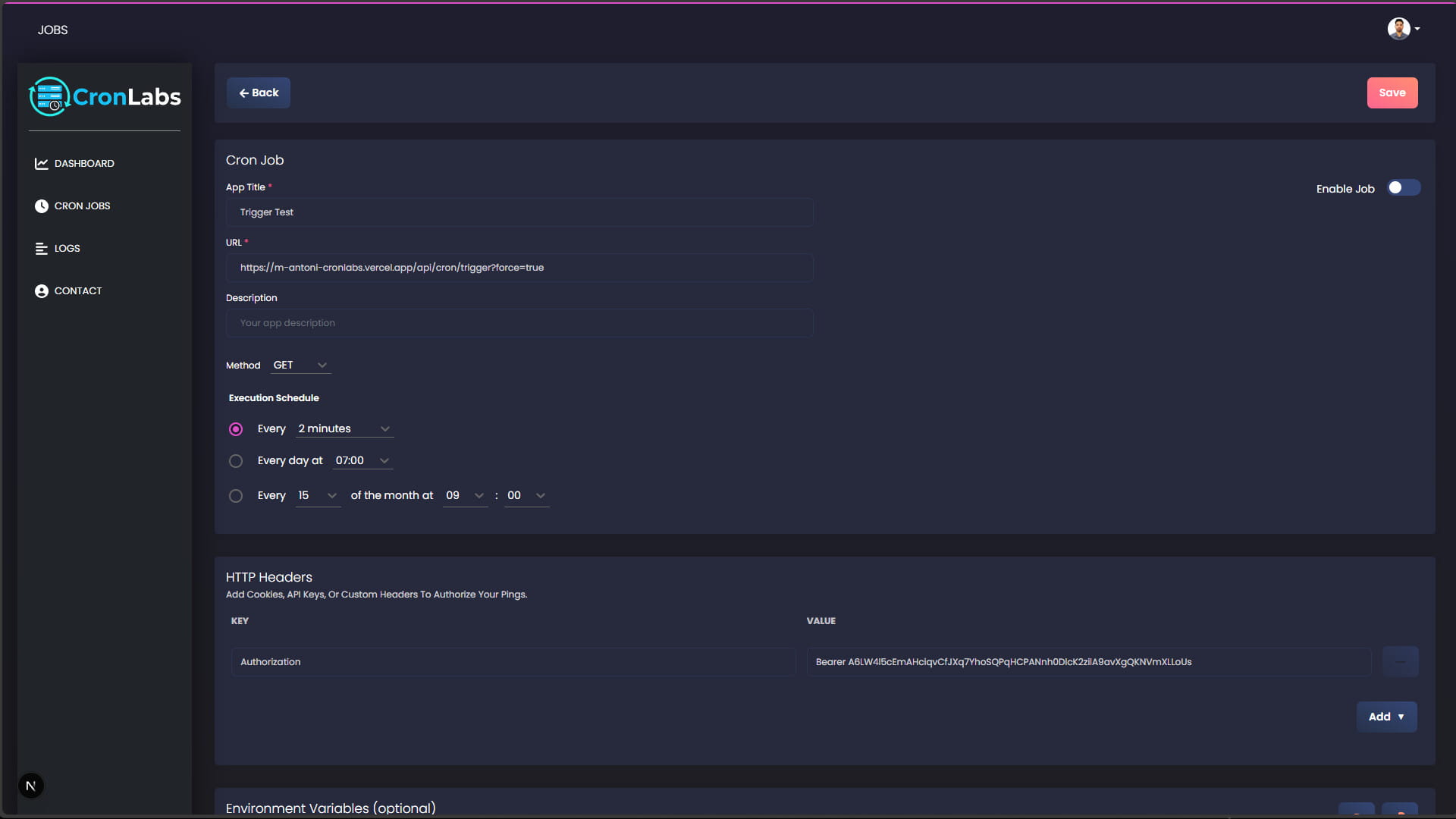Cron Labs is a Next.js web application designed to automate and manage scheduled API requests. It provides a centralized dashboard to ensure your services remain active and execute tasks at precise, customizable intervals.Project Link