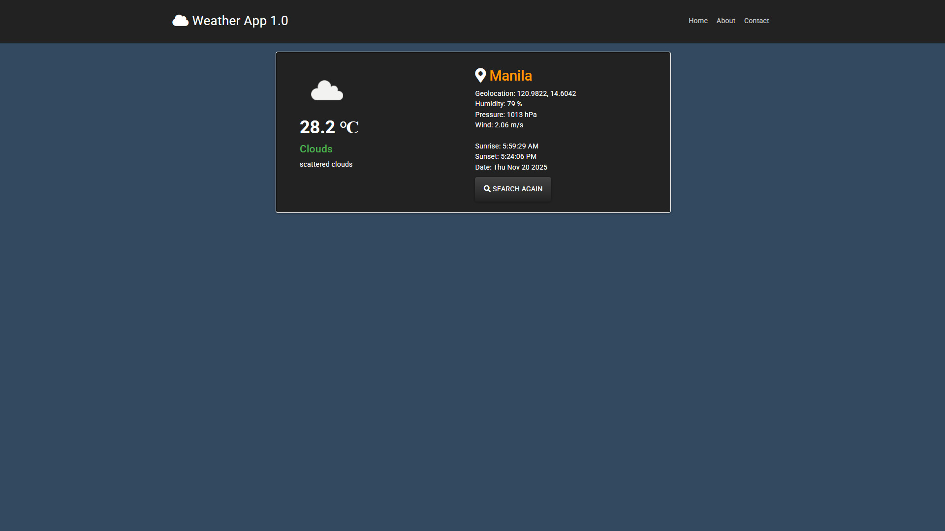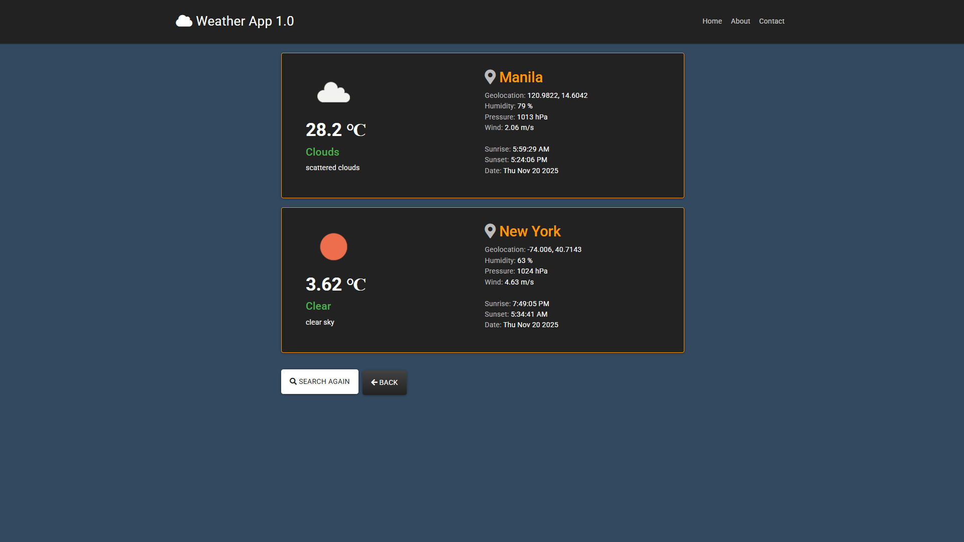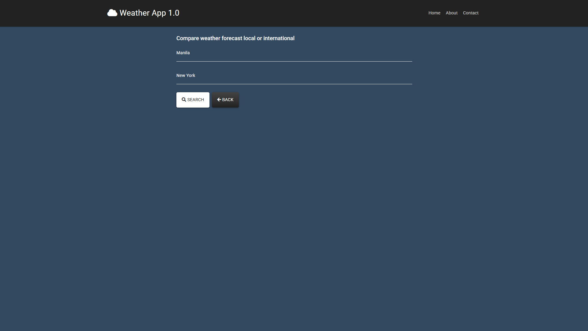 A pretty simple and straightforward weather forecast application built with React and the React Context API. It allows users to search for weather forecasts by city or country and even compare two weather forecasts side-by-side. This project integrates with the OpenWeatherMap API to fetch live and accurate weather data.. Project Link